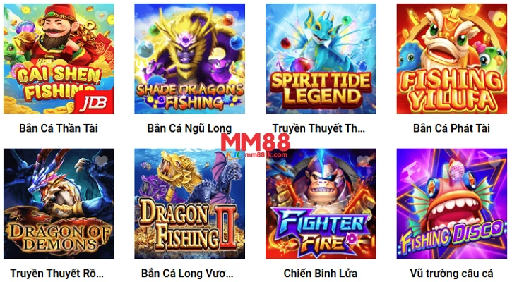 MM88 hợp tác với nhiều nhà phát hành uy tín hàng đầu châu Á, mang đến các sảnh bắn cá hot nhất: